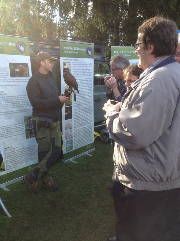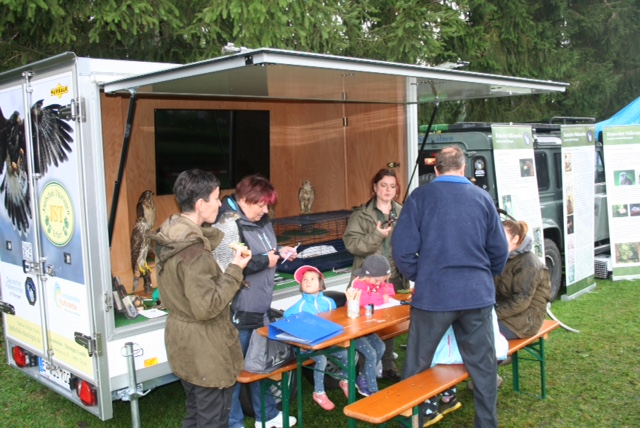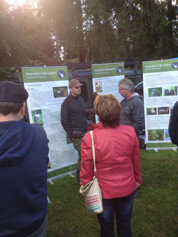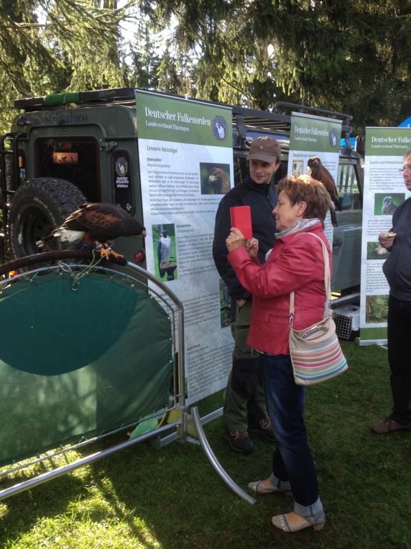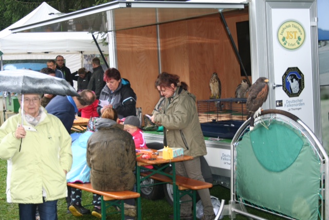Dieses Angebot nahmen wir natürlich gern an und so ist und war es schon auf unzähligen Veranstaltungen in Thüringen im Einsatz um die Öffentlichkeit über das Immaterielle Kulturerbe Falknerei, den Greifvogelschutz und die Greifvogelkunde zu informieren, Interesse für die Falknerei zu wecken und vor allem Vorurteile gegenüber der Falknerei auszuräumen.