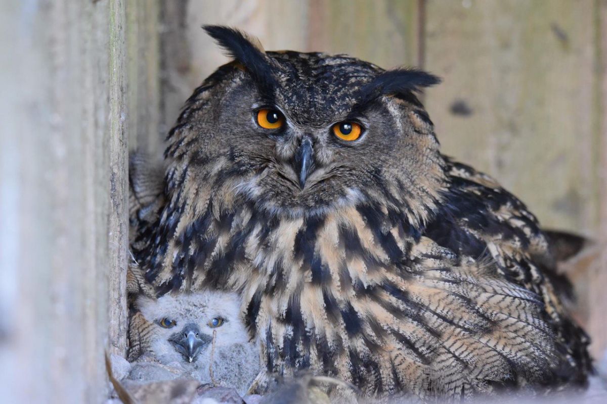 Walterhausen - Fürsorglich breitet Paula (9) ihre Flügel für das kleine Federknäuel aus. Die Uhu-Dame aus der Falknerei am Rennsteig ist im Mama-Glück. Sie zieht ein Findelkind auf. Zwei Mädchen hatten das vermutlich zwei Wochen alte Jungtier im Wald bei Schmalkalden entdeckt - von der leiblichen Mutter fehlte jede Spur. "Wir vermuten, dass das Kleine aus dem Nest gefallen ist", berichtet Falknerin Lisa Schubach (33). "Allein hätte es keine Überlebenschance gehabt und wäre sicher gefressen worden." Das Findelküken wurde inzwischen auf den Namen Findus getauft. Dass es Paula unter ihre Fittiche genommen hat, ist großes Glück. "Die Gefahr, dass sie Findus als Beute ansah, war sehr groß", so Schubach. "Sie hat auch noch nie ein Junges großgezogen."