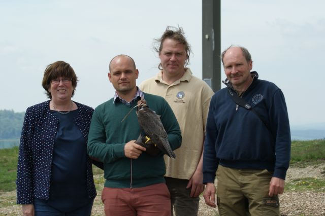 Die Wanderfalken-Dame wird auf dem Skywalk am Sonnenstein vier Monate nach ihrer Verletzung am Flügel freigelassen