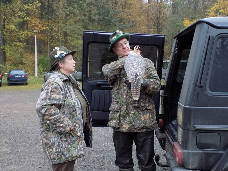 Pünktlich um 9 Uhr hieß ich alle Aktiven, Familienmitglieder und Zuschauer zur 16. Verbandstagung willkommen. 21 Greifvögel harrten auf dem Arm ihrer erwartungsvollen Falkner auf die Einteilung der jeweiligen Beizgruppen. Die erfreulich hohe Zahl an Beizvögeln, in Verbindung mit der streng limitierten Anzahl des Beizwildes, verlangte vom Organisationsteam im Vorfeld ein Höchstmaß an Einfallsreichtum und Flexibilität. Da sich Manfred Menzel unter anderem durch diese Charaktereigenschaften auszeichnet, hatte er auch den Löwenanteil bei der Rekrutierung der Beizreviere getragen. Sein Netzwerk an Verbindungen zusammen mit den getätigten revierverbessernden Maßnahmen ermöglichte es uns, auf ausreichend Beizreviere zurückgreifen zu können.