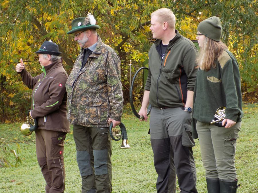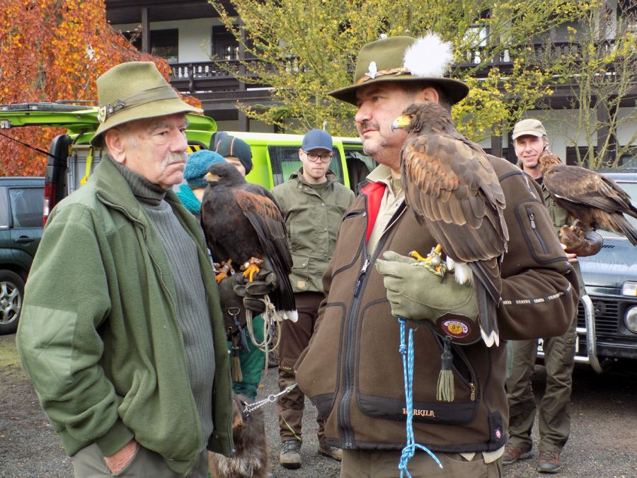 Am Samstagmorgen riefen die Hörner nach einem gemeinsamen Frühstück, um 9 Uhr zum Beizvogelapell. Für den zweiten Tag teilten sich die Schar der Aktiven in 3 Kaninchen, ein Fasan und ein Hasenrevier auf. In den Kaninchenrevieren lief es an diesem Tag etwas besser. Auch wenn nicht endlos Chancen geboten wurden, kamen doch 4 Kaninchen zur Strecke. Peter Haseloff‘s Habichtsterzel gelang es ein Rebhuhn zu erbeuten. Jedoch bedurfte es noch einer ausgedehnten Suche um des Habichts mit seiner Beute habhaft zu werden.